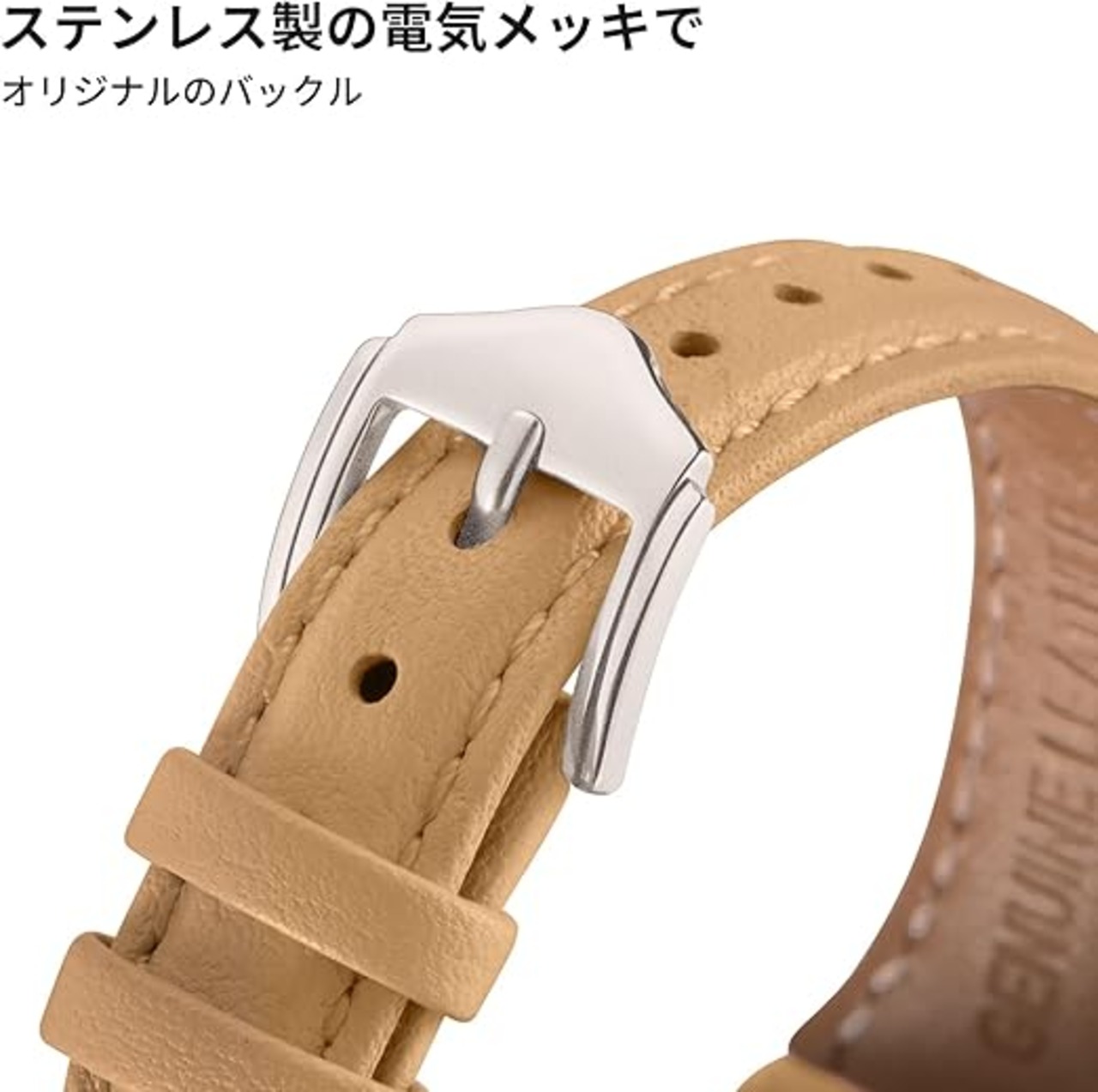 【優雅な外見】:人工レーザーをはるかに超える高級感溢れる本革レーザー+ステンレス製の留め具、優雅で上品な外観を使用者に捧げます。バンドをウオッチに取り付けることで、二つが一つになり、芸術品のように見えます。