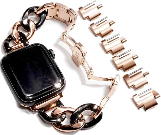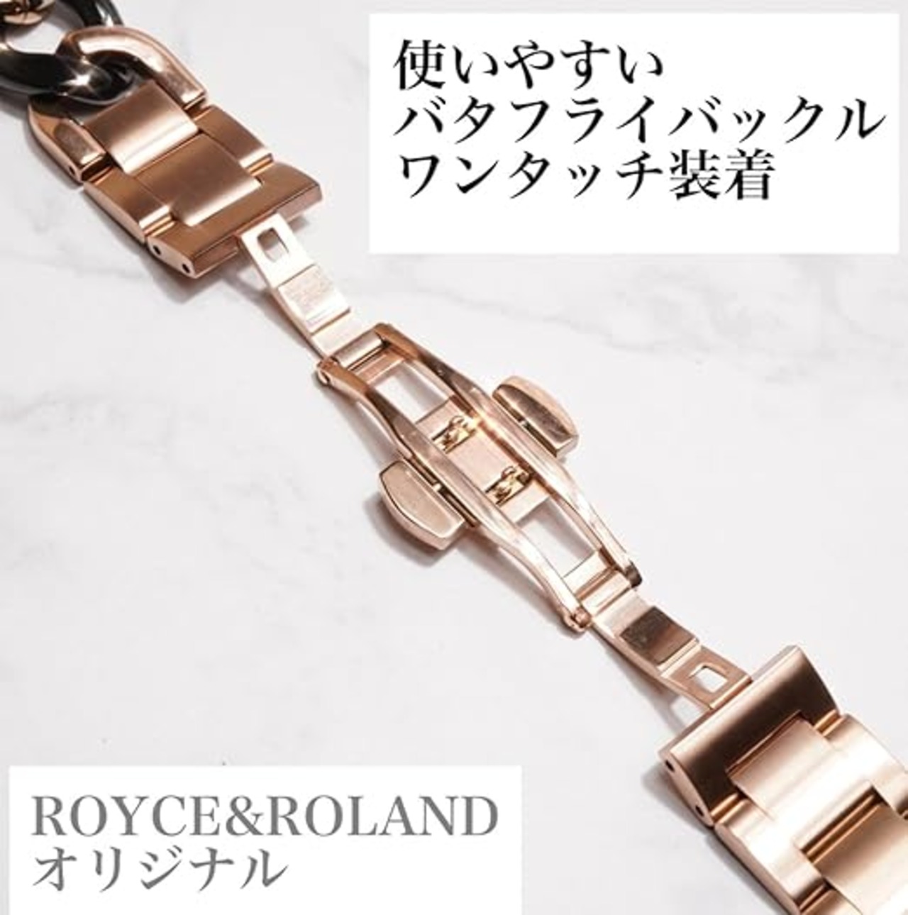 Royce&Roland Apple watch チェーンバンド バタフライバックル おしゃれ アップルウォッチ 時計 バンド (ステンレス/シルバー) レディース メンズ ギフト プレゼント (44mm 45mm 46mm 49mm, ピンクゴールド/ブラック) a