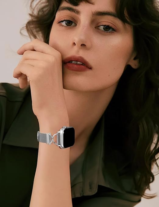 Girovo コンパチブル Apple Watchバンド/アップルウォッチバンド, X型ステンレス磁石磁気マグネットあっぷるうぉっち交換ベルト 細身 おしゃれ 可愛いレデース女性向け網状メッシュメタル金属ストラップ for iWacth Series10/9/8/7/6/5/4/3/2/1/SE/Ultra/Ultra2 38mm 40mm 41mm(シルバー) a