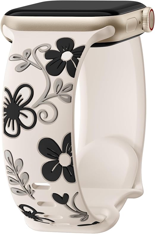 【最新の花彫刻デザイン】このアップルウォッチ バンドは、ノウゼンカズラの模様を彫刻したデザインで、日本のファッシ
