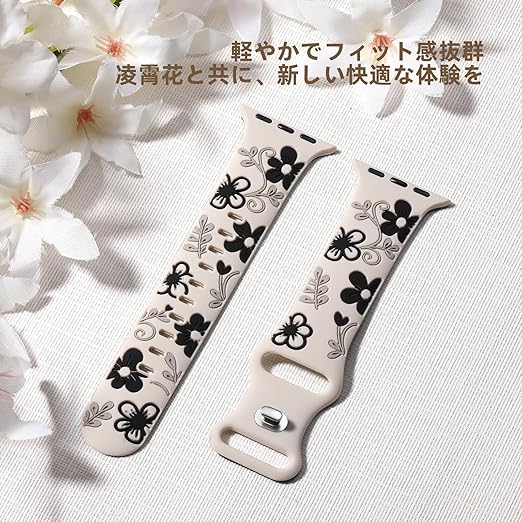 アップルウォッチ バンド シリコン ウゼンカズラ3色花柄入り エレガント 肌馴染み 42mm 44mm 45mm 46mm 49mm 40mm 41mm 38mm 対応Apple watch Ultra3/Ultra2/Ultra11//10/9/8/7/SE3/SE2/SE/6/5/4/3/2/1 交換ベルト ユニーク 柔らかい 人気 メンズ レディース b