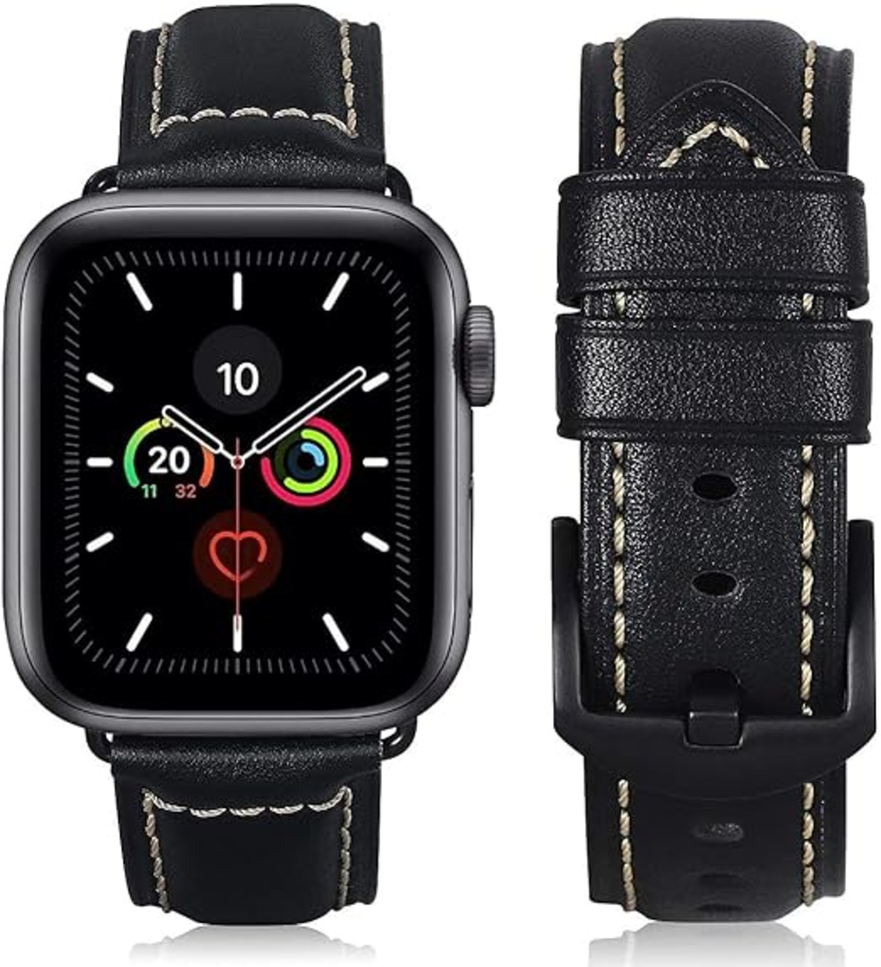 HUAFIY Apple Watch 用バンド42mm 44mm 45mm46mm49mm 本革 交換ベルト Apple Watchシリーズ 10/9/8/7/6/5/4/3/2/1/SE,ultra対応 (42mm44mm45mm46mm49mmに対応, ヴィンテージブラック/ブラックボタン) a