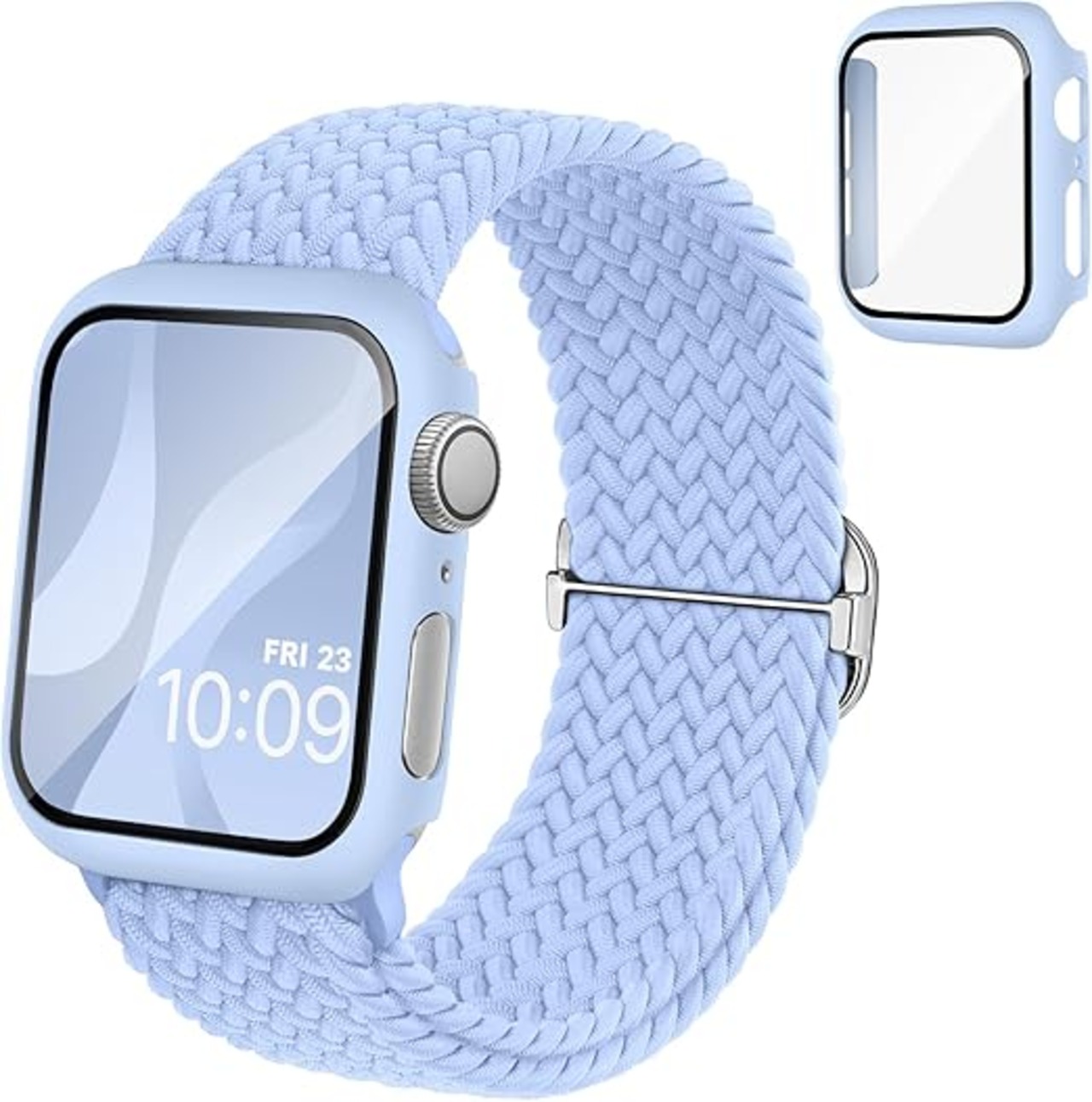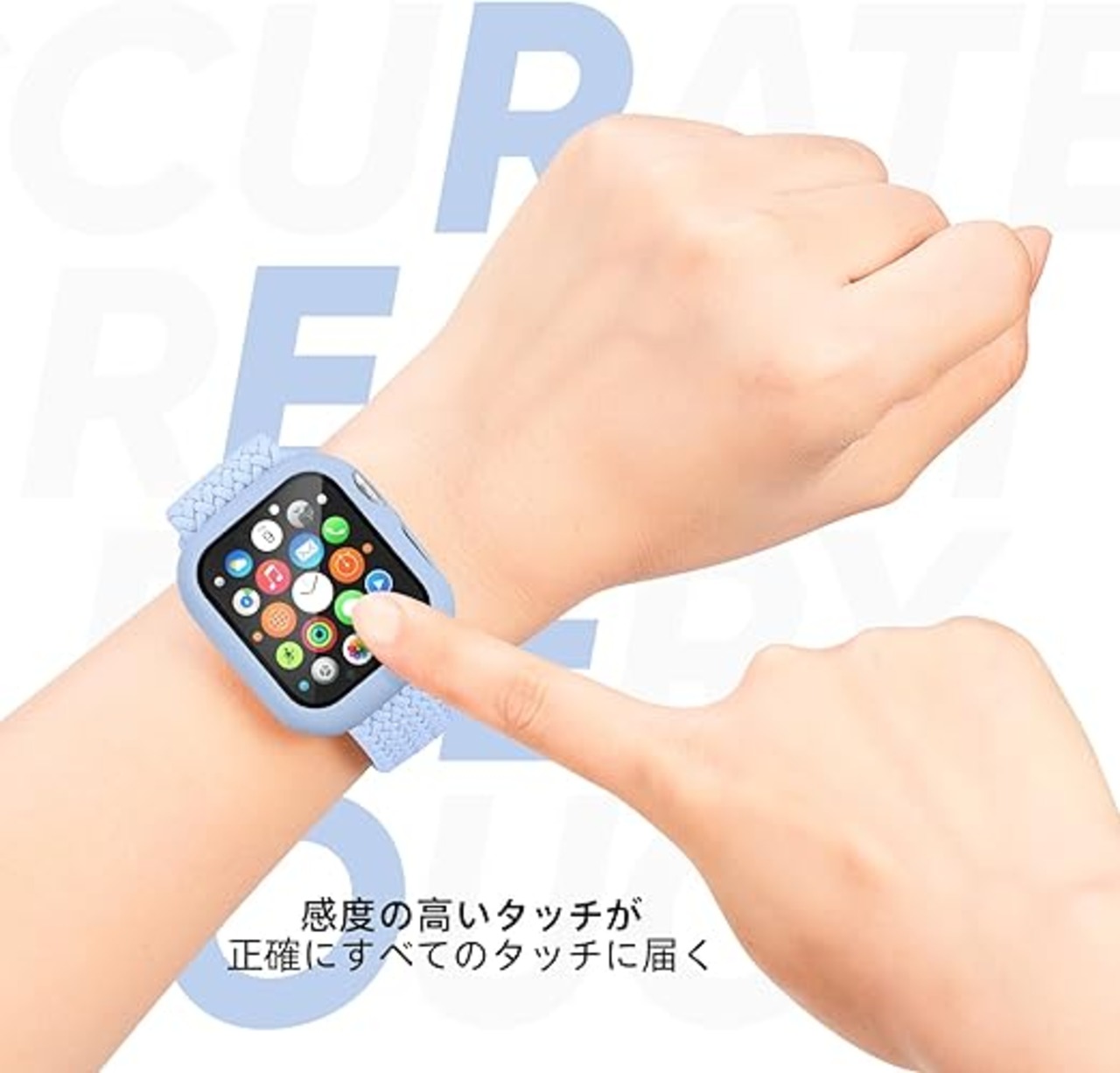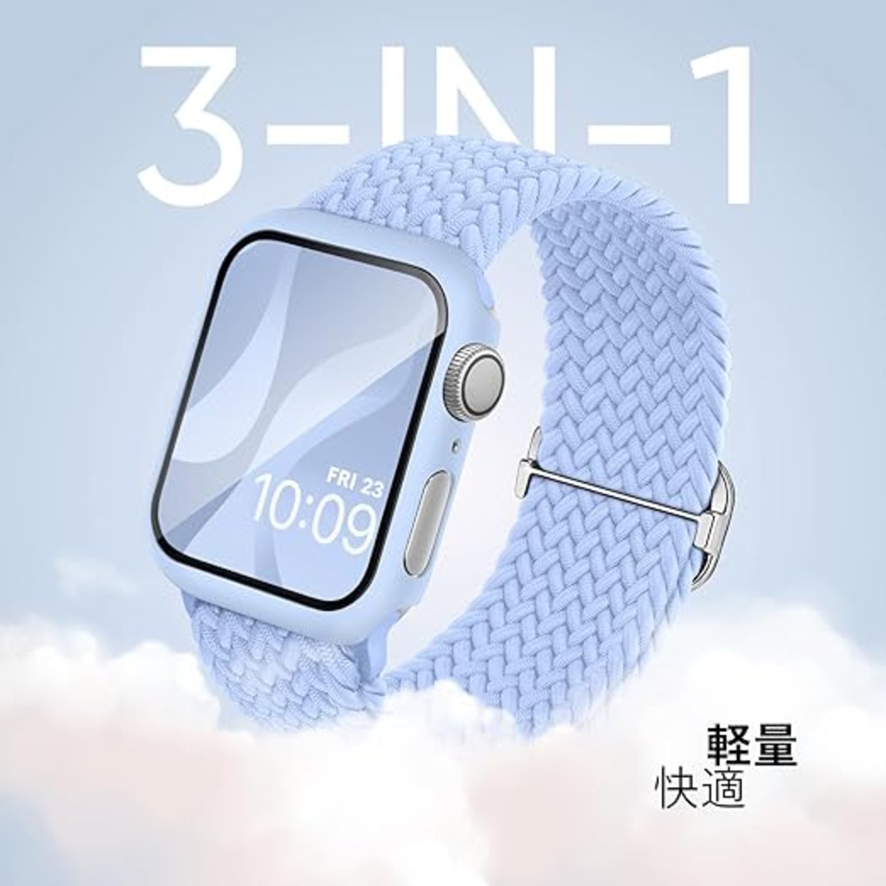 コンパチブル Apple Watchと互換性のあるバンド 編みナイロン製 アップルウォッチ用バンド 保護カバー付き アップルウォッチ向けのスポーツバンド 互換用のApple Watch バンドとケース 一体型 耐衝撃 全面保護 Series 10 9 8 7 6 5 4 3 2 1SEアップルウォッチ バンド 編み込み40mm 41mm 42mm 44mm 45mm 46mmに対応レディース a