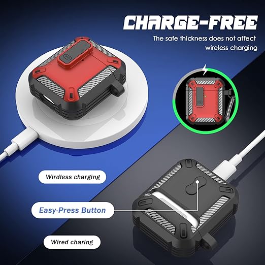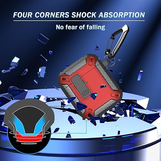 RFUNGUANGO AirPods 第 2 世代ケースカバー クリーナーキット付き ミリタリーハードシェル保護アーマー ロック付き AirPod Gen 1&2 充電ケース用 フロント LED 可視 レッド a