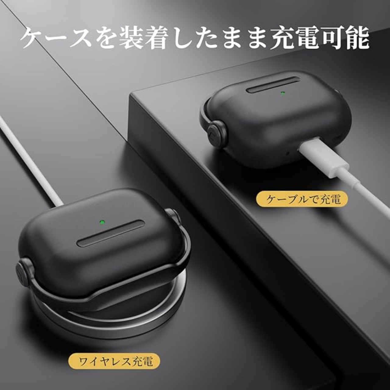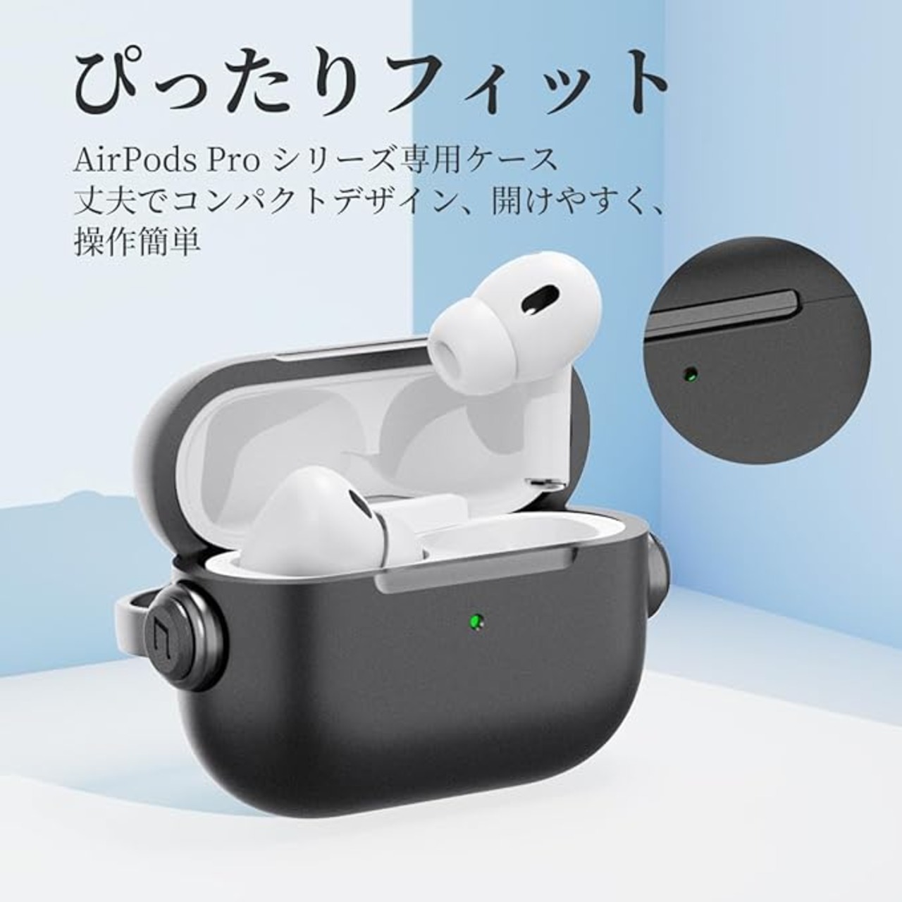 HEIGKOIK AirPods Pro2 ケース ロック付き AirPods Pro 第2/1世代 2023/2022/2019 用 TPU 保護ケース LED可視 耐衝撃 ワイヤレス充電対応 カラビナ付き (ブラック) a
