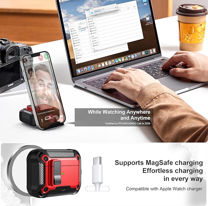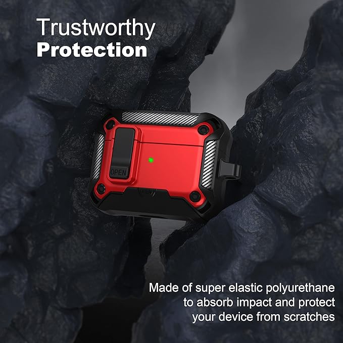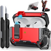 RFUNGUANGO Airpods Pro 1/2 ケース、AirPods Pro 第2世代ケース対応、クリーニングキット付き、電話ホルダー機能付き - レッド a