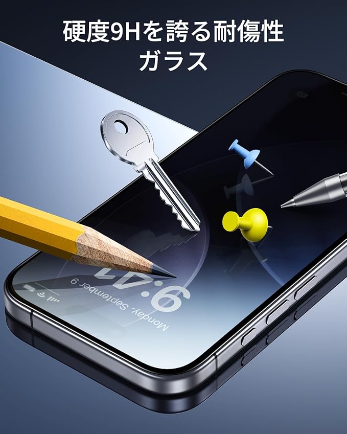 【軍事規格の保護力】iPhone 17 Pro ガラスフィルムの最大15kgの力に耐久する超強靭な強化ガラスは、落下、衝撃、傷から画面を強力に保護します