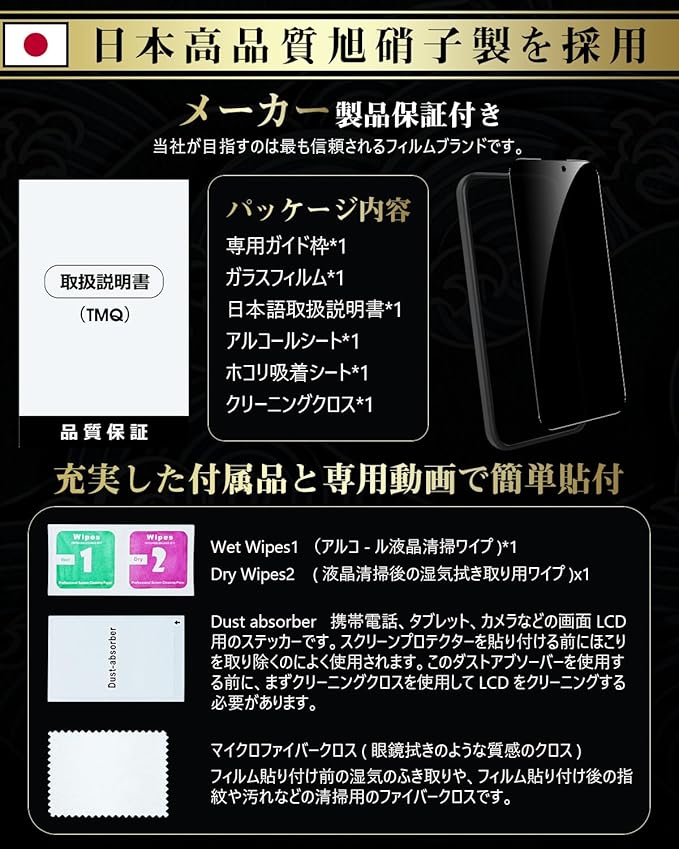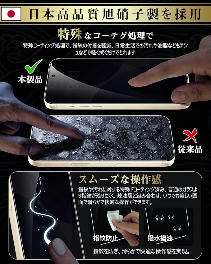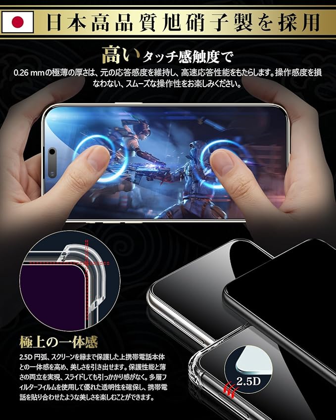 Boesklenn 対応 iPhone 17 Pro ガラスフィルム 覗き見防止【覗き見防止・日本製AGC旭硝子・硬度9H】 耐衝撃 高透過率 飛散防止 自?吸着 極細黒縁 対応 iPhone 17 Pro ガラスフィルム