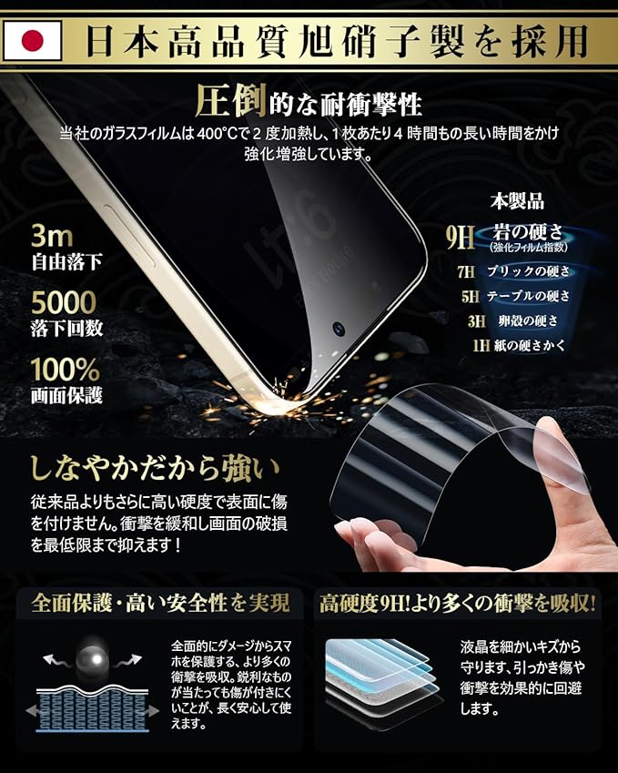 【プライバシーフィルム!覗き見防止!】 Boesklennの 17 Pro 用 ガラスフィルム、日本製強化ガラス(旭硝子)を使用した硬度9Hのガラスフィルムにのぞき見防止機能追加。特別なブラインド加工により、真正面から見ると高透過率ではっきり見えますが、左右の視野からの視線を防ぎ、画面のプライバシーを守ります。角度を変えるとブラインドルーバーにより画面が段々真っ黒になり、公共の場で他人に画面を見られるのが嫌な方はぜひ使ってみて下さい!【Boesklenn永久保証について】製品に不具合が生じた場合