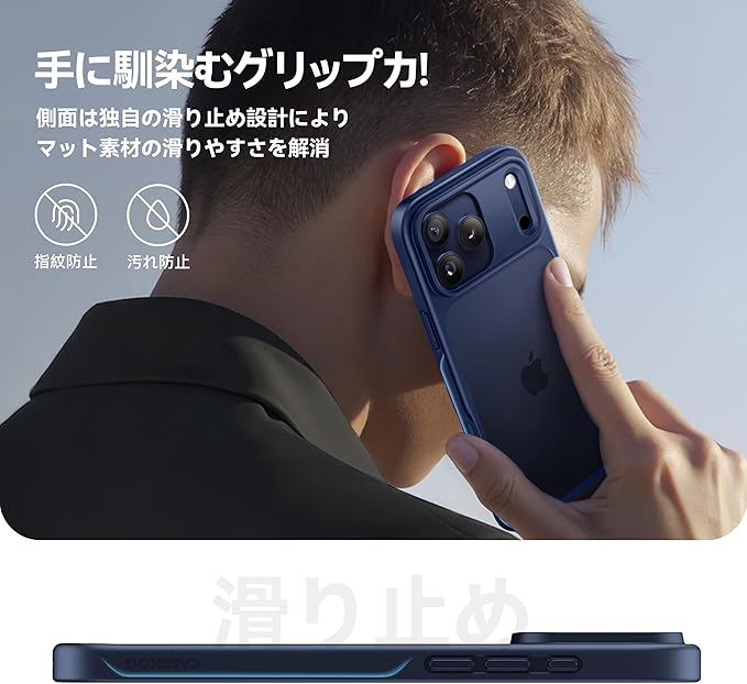 【米軍MIL規格・指紋防止】CASEKOO iPhone 17 Pro 用 ケース 耐衝撃 滑り止め 指紋防止 米軍MIL規格 マット仕上げ ストラップホール付き 黄変防止 耐久性 カバー ワイヤレス充電対応 いphone17pro 用ケース 6.3 インチ(ブルー)