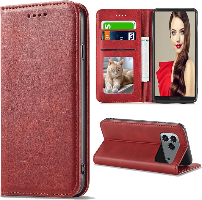iPhone17 Pro ケース 手帳型 アイフォン17プロ カバー 携帯ケース あいふぉん手帳型 スマホケース 携帯カバー PUレザー ストラップホール付き カード収納 財布型 内蔵マグネット式 スタンド機能 薄型 防水 耐衝撃 全面保護 (iPhone 17 Pro 対応) レッド