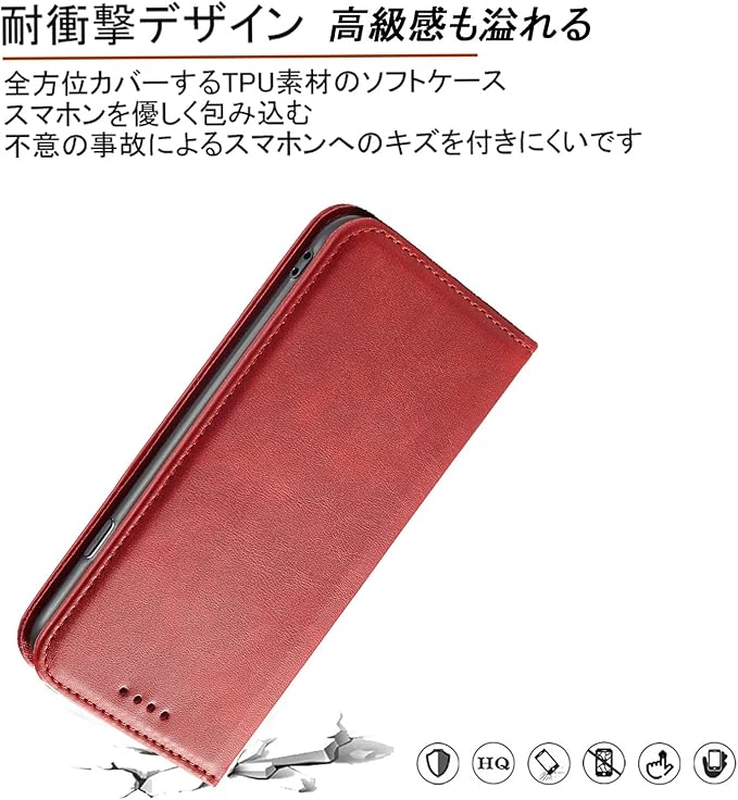 ?【素材改良】本商品の外部カバーは牛革繊維を人工合成という生産プロセスで仕上げられた合革で、普通の合革より、性能上の 耐熱性、耐摩擦が一層アップされた。表面生地が硬すぎず、やわすぎず、ちょっと良い手触りです。手汗が出てきても滑りにくく、ケースにも変な匂いがございません。インなケースは弾力性のあるソフト素材を採用しており、四角までしっかり保護でき、実用性高い手帳型です。