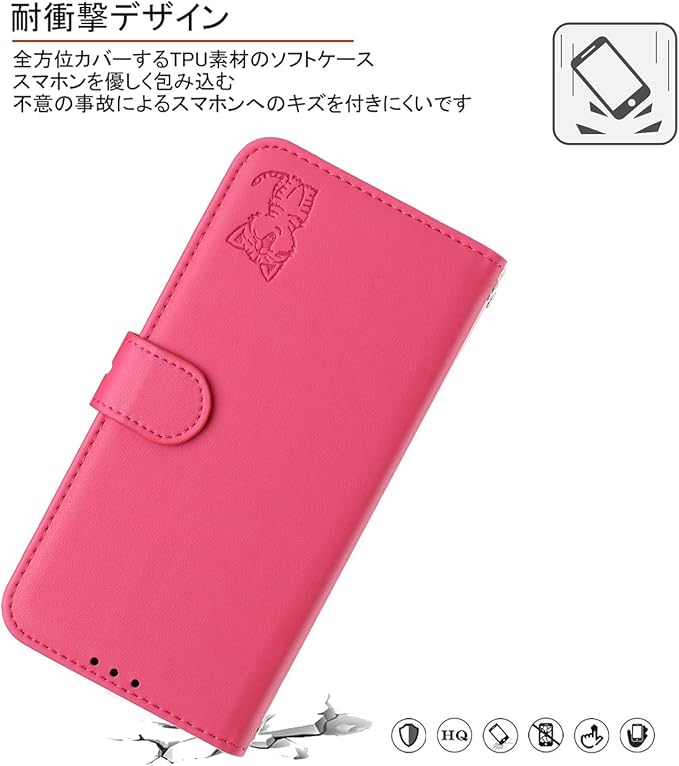 ?【耐衝撃性】耐熱性と柔軟性を誇る上質なPUレザーで作られ、手触り良い、落下時の衝撃を効率的よく吸収できるようにケースの各コナーの裏側が設計されています。丈夫でほど良い厚みで、落としてもスマホをきちんとお守れます。