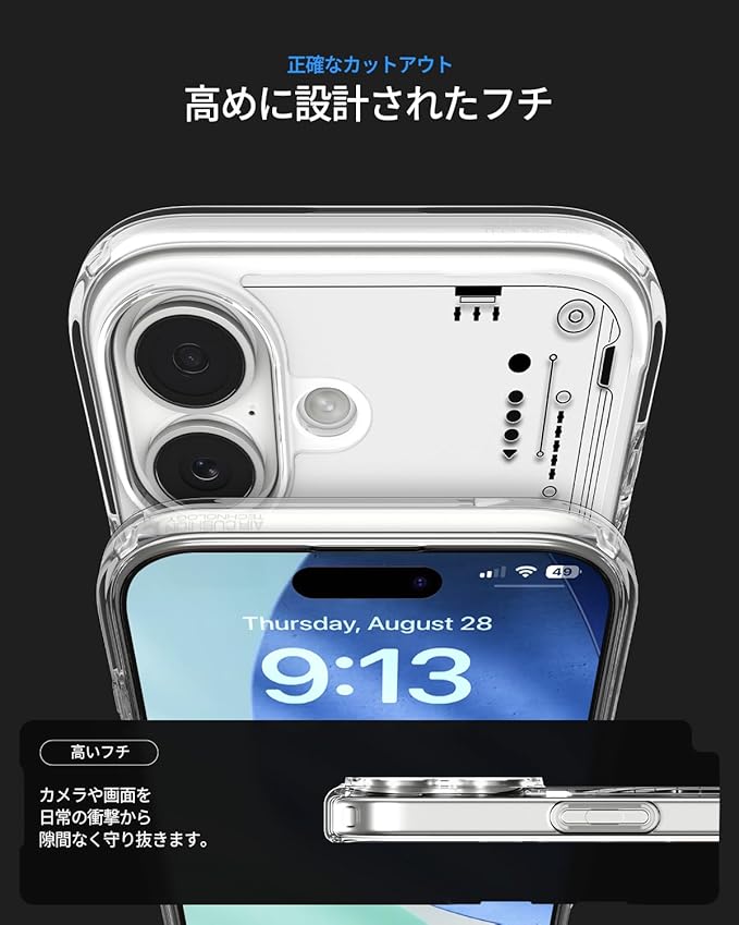【MagSafe完璧対応】強化されたマグネットが内蔵されており、強い固定力でMagSafe機能を便利に利用できます。