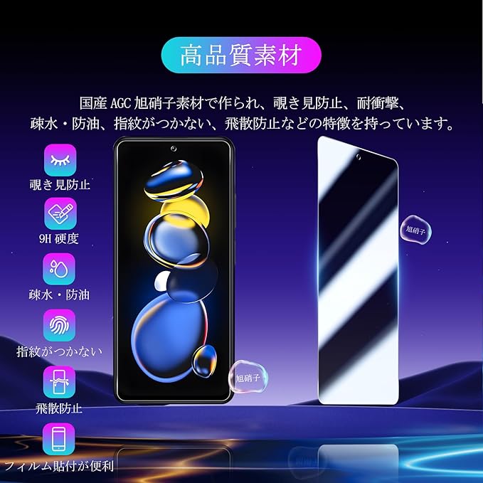 対応 Xiaomi 11T Pro フイルム 覗き見防止 顔認証ロック解除 【2枚セット-AGC旭硝子 】 Xiaomi 11T ガラスフイルム のぞき見防止 シャオミ11T 液晶 保護フィルム のぞき見 シャオミ11T プロ プライバシーフィルム 強化ガラス さらさら ケース 【 硬度9H 耐衝撃 飛散防止 気泡ゼロ 3D Touch対応 高感度 撥油性 指紋防止 ラウンドエッジ加工 】 a
