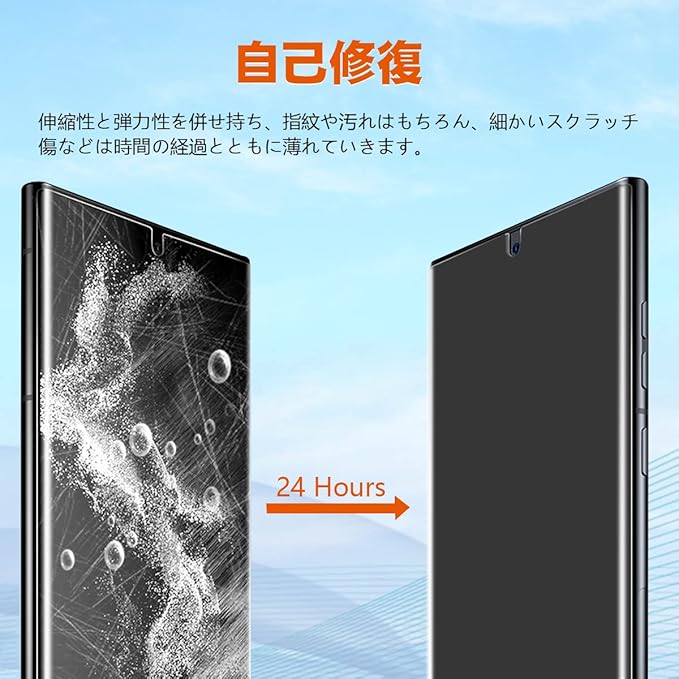 【キズ自動修復技術】高品質の柔軟なTPU素材,特有の弾力性と柔軟性により、ガラスフィルムでは貼れなかった画面のエッジまでしっかり保護することができます。衝撃と傷つき防止で全面を保護します。万が一フィルムに傷が発生しても、24時間経つと、傷が自
