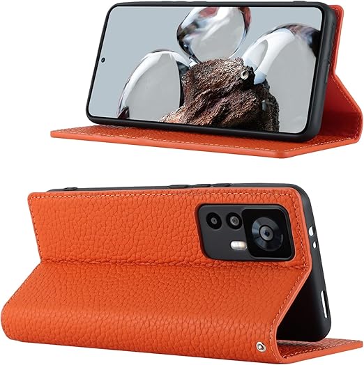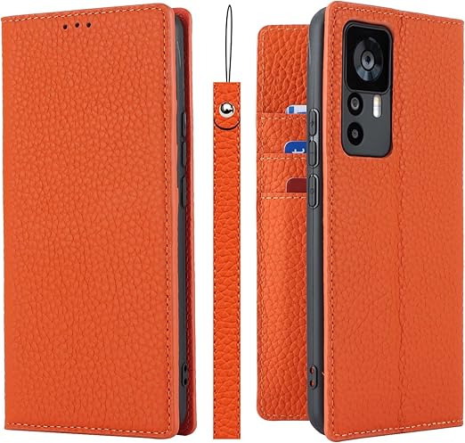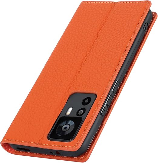 Pelanty for Xiaomi 12T ケース手帳型 for Xiaomi 12T Pro スマホケース 牛革製品 本革レザー 財布型カバー カード収納 スタンド機能 内蔵マグネット 手作り柔らかい シャオミ12t プロ 携帯カバー ストラップ付 ヘッドフォンケーブル 耐衝撃 オレンジ a