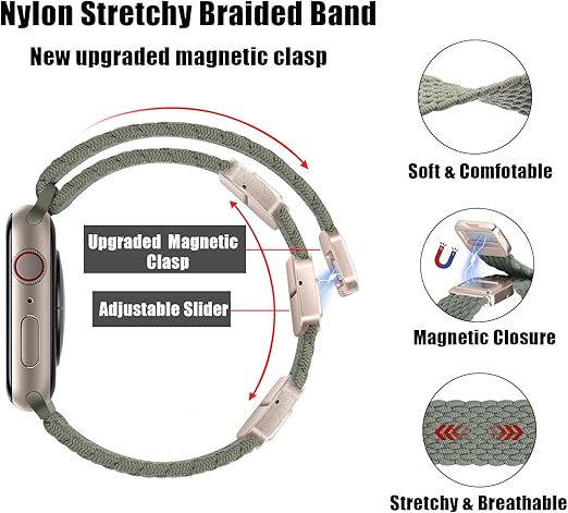 [HITZEE] Band コンパチブル Apple Watch バンド 49/46/45/44/42/41/40/38mm、磁気留め金付きのナイロン弾性編組バンド調節可能なスポーツアップルウォッチバンド付き Apple Watch Ultra 3/2/1 SE 3/2/1 シリーズ 11 10 9 8 7 6 5 4 3 2 1 に対応 (42/44/45/46/49mm,オリーブグリーン) a