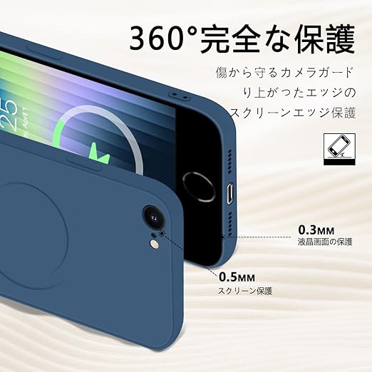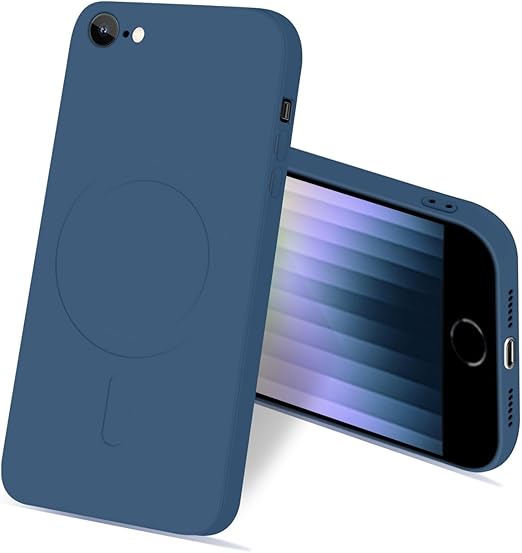 【bjnosdv】マグセーフ対応 iPhoneSE2 iPhoneSE3 iPhone7 iPhone8 ケース いpほねSE2 MagSafe対応 ワイヤレス充電対応 シリコン 耐衝撃 アイフォンSE3 カバー 液体シリコーン スマホケース マット質感 柔軟 ストラップホール付き 指紋防止 滑り止め 落下防止 4.7インチ(ブルー) a