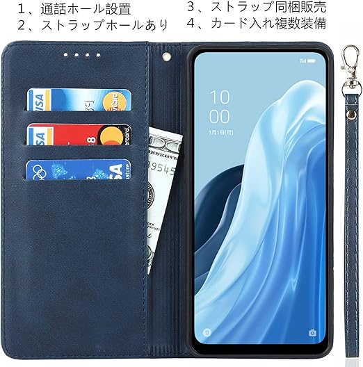 適用 Xperia 1 VI SO-51E SOG13 A401SO ケース 手帳型 エクスペリア 1 VI ストラップ ケース エクスペリア 1 6 手帳 スマホケース Xperia1VI 手帳型ケース フリップケース エクスペリア16ケース 【BonwFzin】 PU レザー ストラップケース ストラップホール付き マグネット フリップ カード カード入れ 落ち着いた色 レトロ ネイビー a