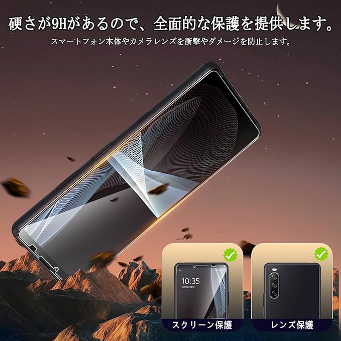 ★【日本旭硝子素材·傷や衝撃に強い·飛散防止】日本旭硝子製ガラス素材採用、表面硬度は9H、ハードコーティング技術により外部からの衝撃をフィルムが吸収し、画面へのダメージを最低限まで抑えました。スマートフォンがカバンの中で、鍵などの鋭いものにぶつかっても傷が付きにくく。スマホを落