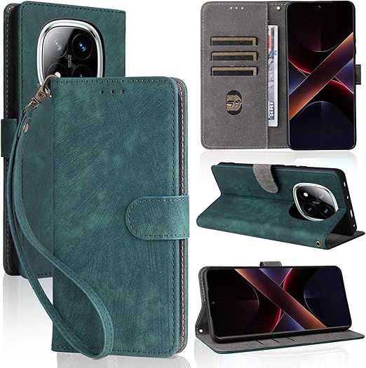 Redmi Note 14 Pro 5G/Xiaomi POCO X7 用 ケース 手帳型 カバー 財布型 【NOUKAJU】 カードポケット付き 高級 PUレザー 手触りが良い 落下防止 衝撃吸収 耐摩擦 全面保護 耐磁性RFID機能 マグネット式 カード収納 スタンド機能 軽量 薄型 ストラップ付き スマホケース (グリーン) a
