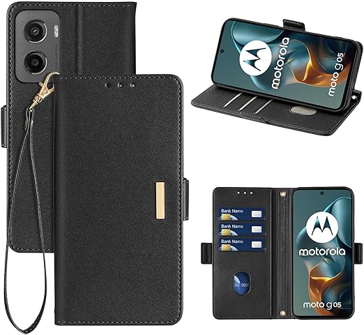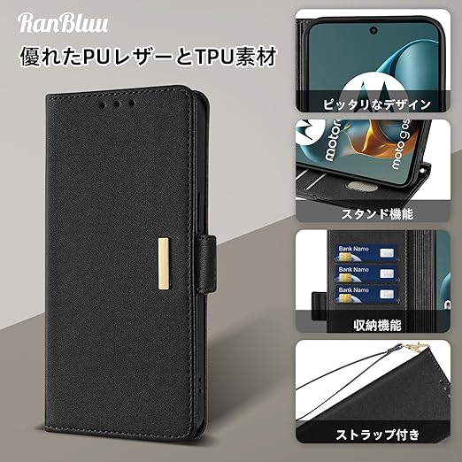 RanBluu コンパチブル Motorola Moto G05 ケース 手帳型 モトローラ g05 用 高級PU レザーケース カバー スマホケース 財布型 カード収納 マグネット カメラ保護 横置きスタンド機能 ストラップ付き 耐摩擦 耐衝撃 全面保護(MOTO G05 対応 ブラック) a