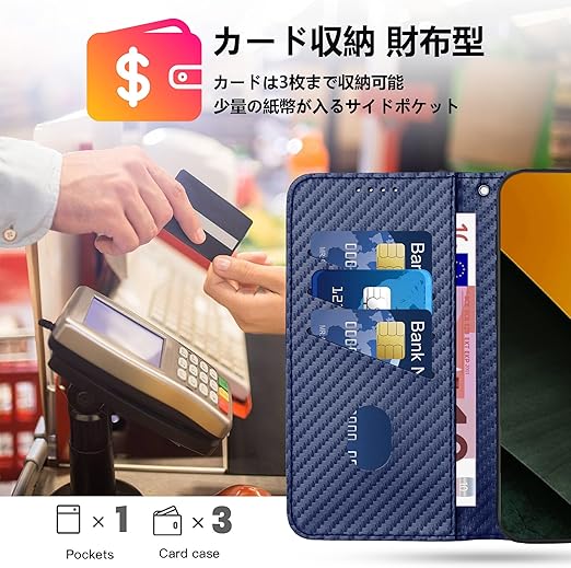 【上質な素材】このケースの外装は高品質のPU素材とカーボンファイバーの質感で作られており、手に馴染み、傷防止、指紋防止、優れた熱と衝撃吸収性を持っています。内側はソフトなTPU素材で携帯電話を保護し、着脱も簡単です。また、ケースは携帯電話