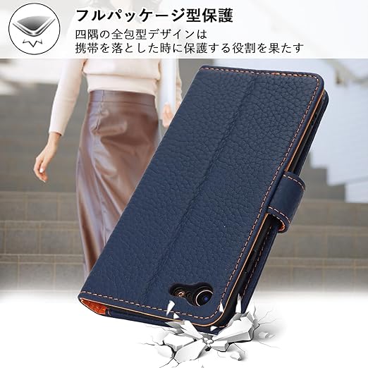 DEYHU 対応 iPhone SE ケース 第2世代 第3世代 手帳型 カード収納 スタンド機能 iPhone 8 ケース 本革 大容量 耐衝撃 カード収納 iPhone 7 ケース 手帳型 アイフォンse ケース レザー ブルー と オレンジ a