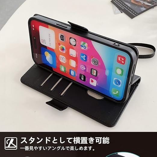 【機能性1:高品質PUレザー】外側のカバーには触感がとても良い高品質のPUレザーを採用します。内側のスマホホルダーは柔軟なTPU素材を採用したソフトケースです。耐衝撃の二重構造で落下の衝撃をうまく吸収し、本体をしっかりと守ります。フリップの表にゴールド色の金具を飾って、ユニークな高級感がアップします。