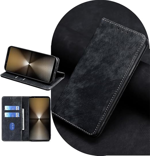 AiMaoo Sony Xperia 1 VII 対応 ケース 防塵 耐衝撃 傷つけ防止 軽量 手作り PUレザー カード収納 RFID磁気防止 マグネット スタンド機能 ケース 手帳型 Sony Xperia 1 VII 用 (ブラック) a