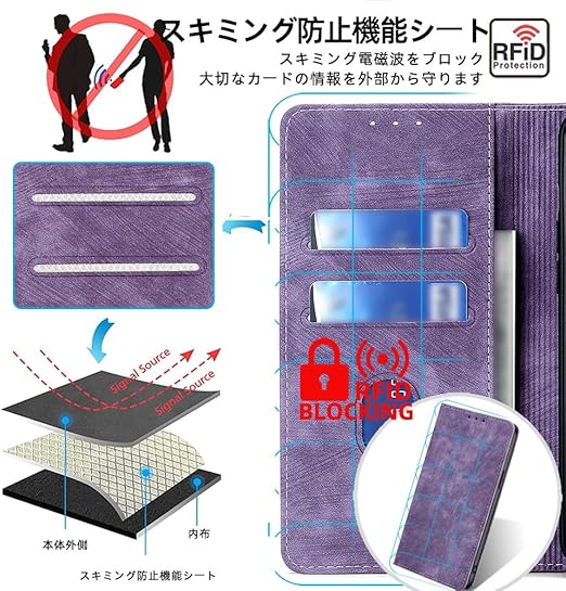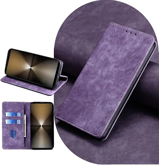 AiMaoo Sony Xperia 1 VII 対応 ケース 防塵 耐衝撃 傷つけ防止 軽量 手作り PUレザー カード収納 RFID磁気防止 マグネット スタンド機能 ケース 手帳型 Sony Xperia 1 VII 用 (パープル) a