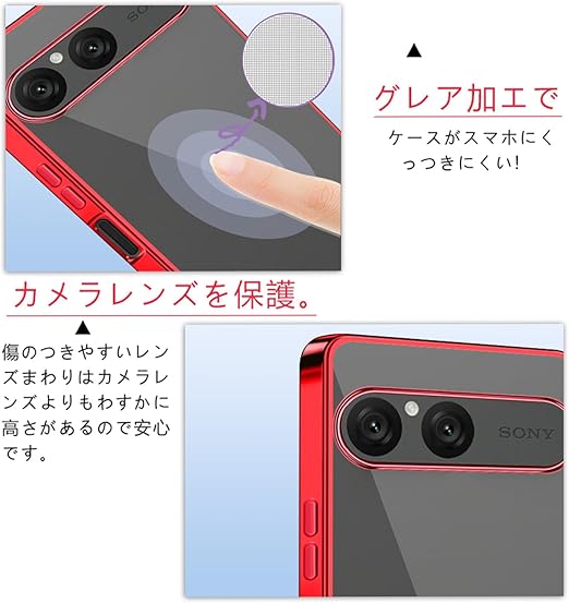 10 VII 用 ケース ショルダー クリア SO-52F スマホケース 透明 TPU カバー ストラップ付き 肩掛け 首掛け 紐付き 斜めがけ 薄型 耐衝撃(レッド) a