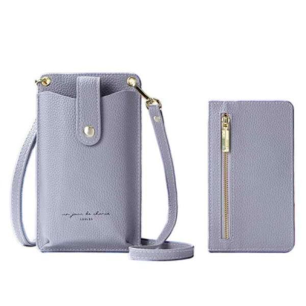 [LEOLEO] スマホショルダー スマホポーチ ショルダーバッグ スマホポシェット 携帯ポッチ スマホポシェット 軽量 レディース ポーチ 斜め掛け 縦型 カードケース付き (ムラサキ)