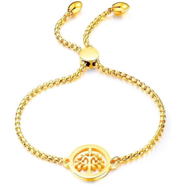 AIKS 生命の樹 ブレスレット レディース ゴールド ステンレス コイン 腕輪 おしゃれ 細い チェーン 女性ブレスレット パーティ ファッションア1