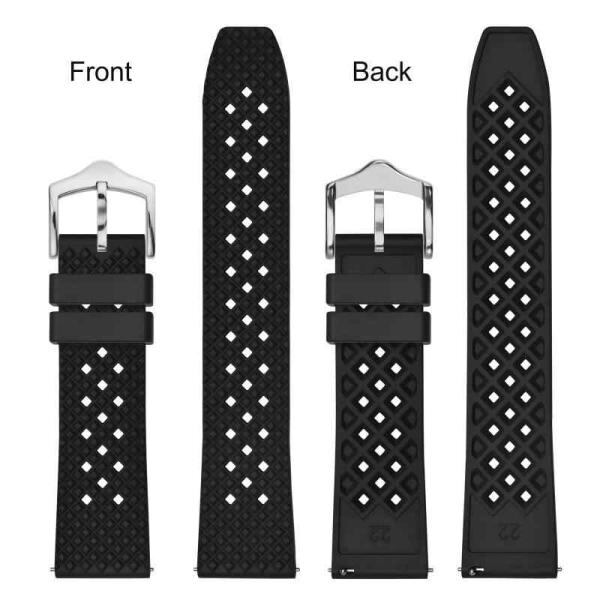 [Anbeer] 時計バンド 18mm Quick Release FKMラバー腕時計ベルト フッ素ゴム交換ベルト スマートウォッチも適用 ブラック・シルバー尾錠