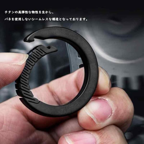 [簡単に使える]高強度のため加工しにくいチタンを、高い技術で美しく加工した工業製品の造形美が楽しめます。バネを使用せず、チタンのしなやかで高弾な特性を活かしたシームレスな開口部です。開閉は片手でも簡単にできる丸いキーホルダーです。