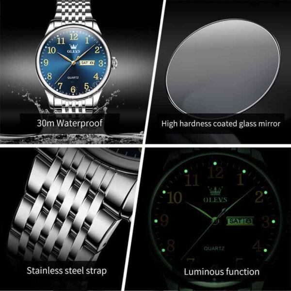 OLEVS クォーツ 腕時計 メンズ セット内容: 腕時計本体、ボックス、取扱説明書付属。カジュアル 人気 男性用 腕時計 にアナログクォーツムーブメントを採用(本体に電池が付属)。曜日(英)表示切替機能。