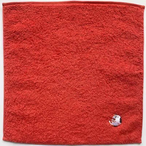 京佑 日本製 今治 くるみん タオル ハンカチ 刺繍 丸ねこ 赤色 25×25cm はんかち1