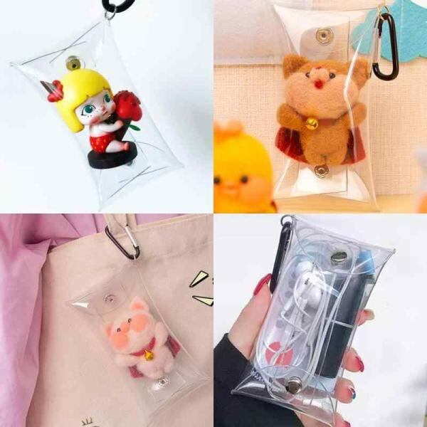 サムコス 小銭入れ 透明 2個セット ミニポーチ ウォレット ミニ財布 キーケース コンパクト 可愛い カラビナ付き 洗える 携帯用 取り出し便利 (1
