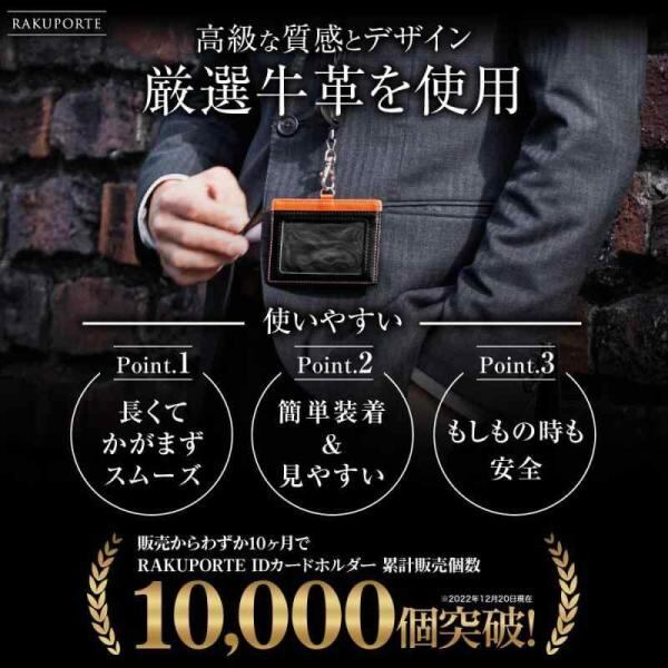 IDカードホルダー 厳選牛革【クリップ付き伸縮リール】 パスケース メンズ カードケース ネックストラップ 首掛け RAKUPORTE