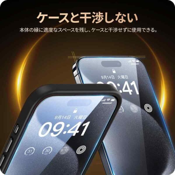 NIMASO ガラスフィルム iPhone15ProMax用 強化ガラス 保護フィルム ガイド枠付き 2枚セット アイフォン15プロマックス対応(6.1