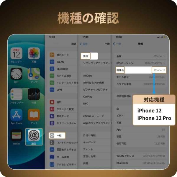 互換性のあるモデル: iPhone12 / iPhone12 Proのみ適用。 (ご注意:iPhone12mini / iPhone13 / iPhone13miniに対応しておりません。)具体的なサイズは143.38*68.2mmです。