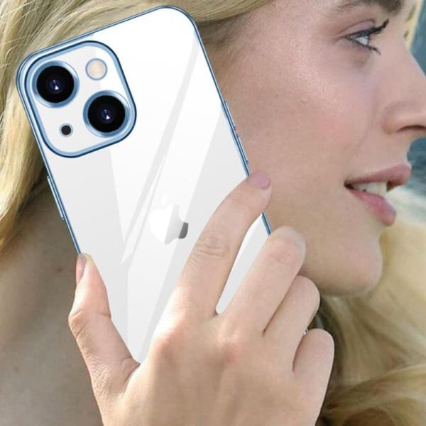 iPhone 15 用 ケース クリア 耐衝撃 iPhone15 用 カバー 軽量 薄型 TPU アイフォン15 用 スマホケース ワイヤレス充電対応 擦り傷防止 落下防止 ストラップホール付き メッキ加工- ブルー