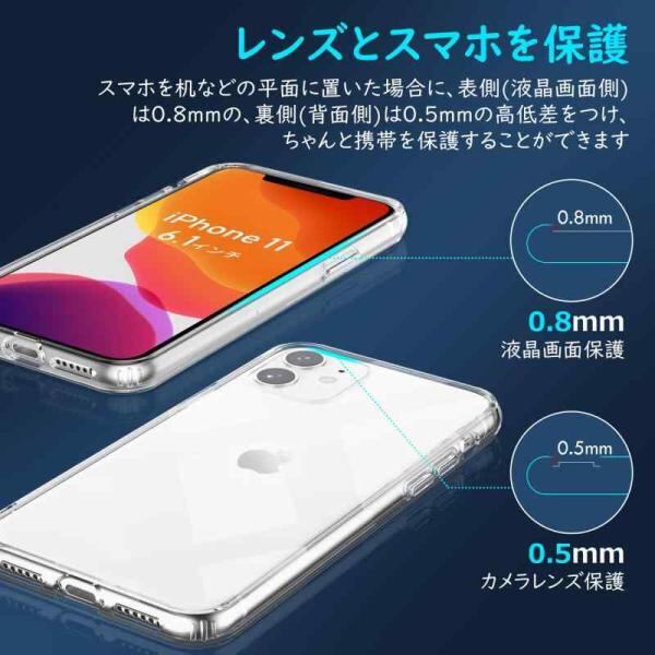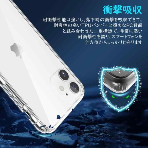 iPhone11 ケース クリア MIL規格耐衝撃 耐衝撃 黄変防止 [ワイヤレス充電対応 ]『四隅滑り止 レンズ保護 滑り止め 軽い スレ傷防止〕[PC背面 + TPUバンパー 二層構造フィット感]アイフォン11