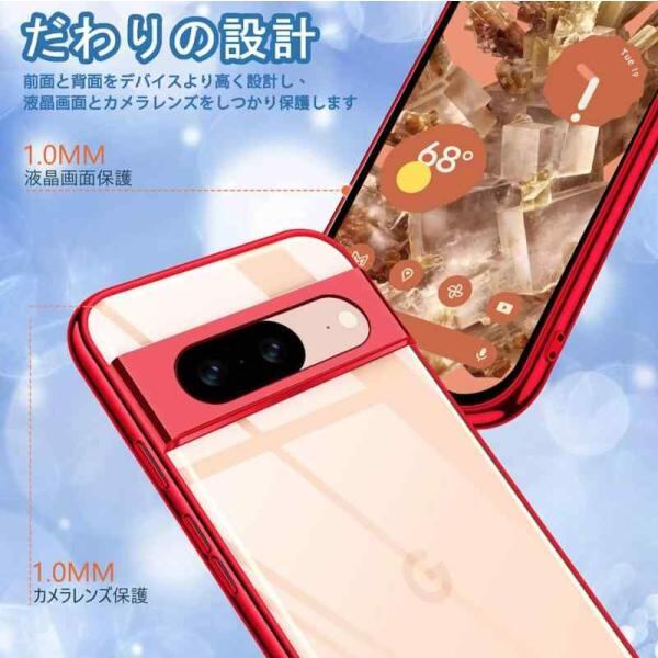 Google Pixel 8 ケース クリア TPU ピクセル8 カバー スリム 薄型 軽量 透明 ソフト 耐衝撃 メッキ加工 傷つけ防止 人気 全面保護 スマホケース レッド