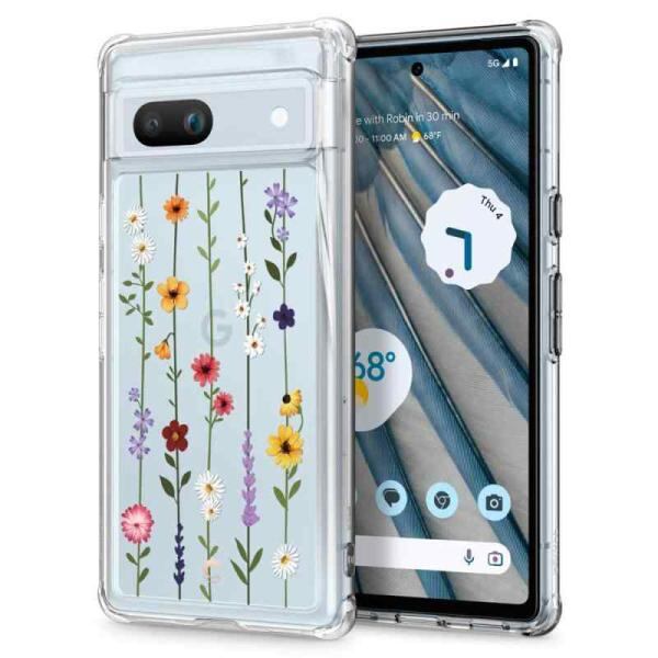 【CYRILL】 by Spigen Google Pixel 7a クリア 花柄 ケース TPU 半透明 ソフト PC ケース 花 ストラップホール付き 高弾性 耐久性 軽量 耐衝撃 カメラ保護 薄型 ワイヤレス充電 Qi充電 ほこりなし フレッ