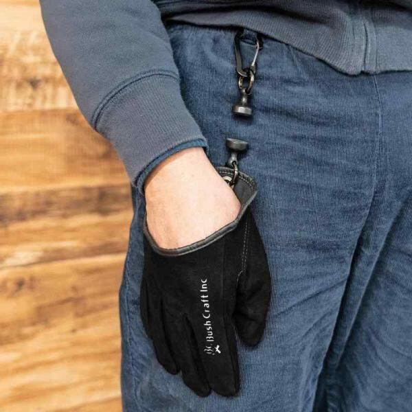 [ブッシュクラフト] レザーグローブ クイック焚き火グローブ ブラック サイズ(mm):本体全長約208 カラビナ&マグネット部長さ約120 手のひら1