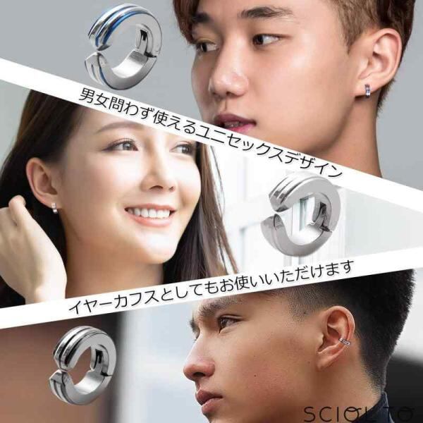 [SCIOLTO] ピアス穴不要 フェイクピアス イヤリング ノンホールピアス イヤーカフ リングピアス メンズ レディース (シルバー ブラック ブルーセット)