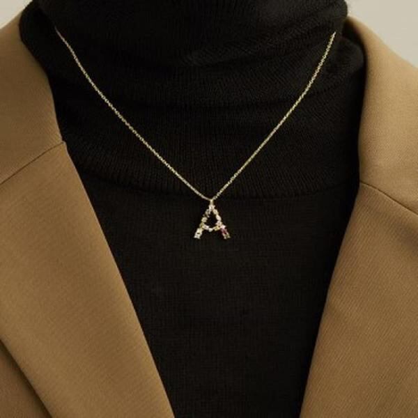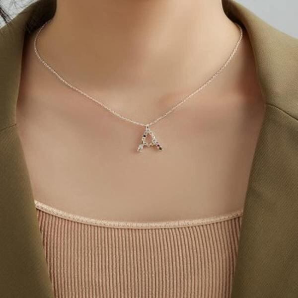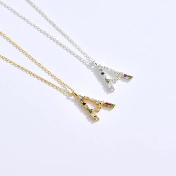 Rockyu ネックレス レディース ゴールド 18金 シルバー 5A ジルコニア アルファベット ペンダント 豪華 キラキラ A-Z イニシャルネックレス 細い 鎖骨チェーン 恋人 記念 ファッションアクセサ